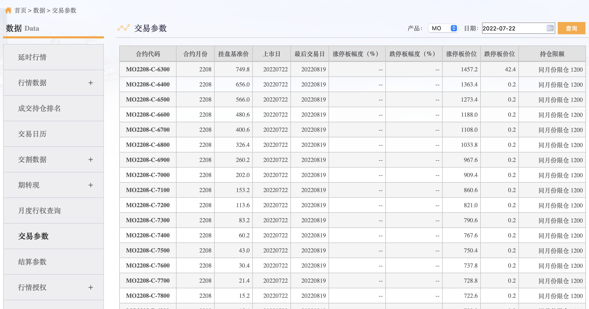 中證1000股指期權(quán)MO2208月份合約、MO2209月份合約、MO2212月份合約、MO2303月份合約、MO2306月份合約同日上市交易,中證1000股指期權(quán)合約的掛盤基準(zhǔn)價(jià),可通過中金所網(wǎng)站“數(shù)據(jù)”欄目查詢。