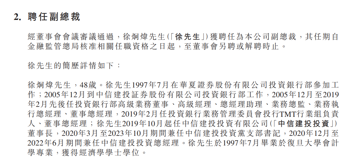 此外,中國(guó)華融還發(fā)布了高管變更公告,公告顯示,盧敏霖獲委任為董事會(huì)戰(zhàn)略發(fā)展委員會(huì)委員、關(guān)聯(lián)交易委員會(huì)委員、審計(jì)委員會(huì)委員并擔(dān)任審計(jì)委員會(huì)主任。徐炯煒獲聘任為中國(guó)華融副總裁,其任期自金融監(jiān)管總局核準(zhǔn)相關(guān)任職資格之日起,至董事會(huì)另聘或解聘時(shí)止。