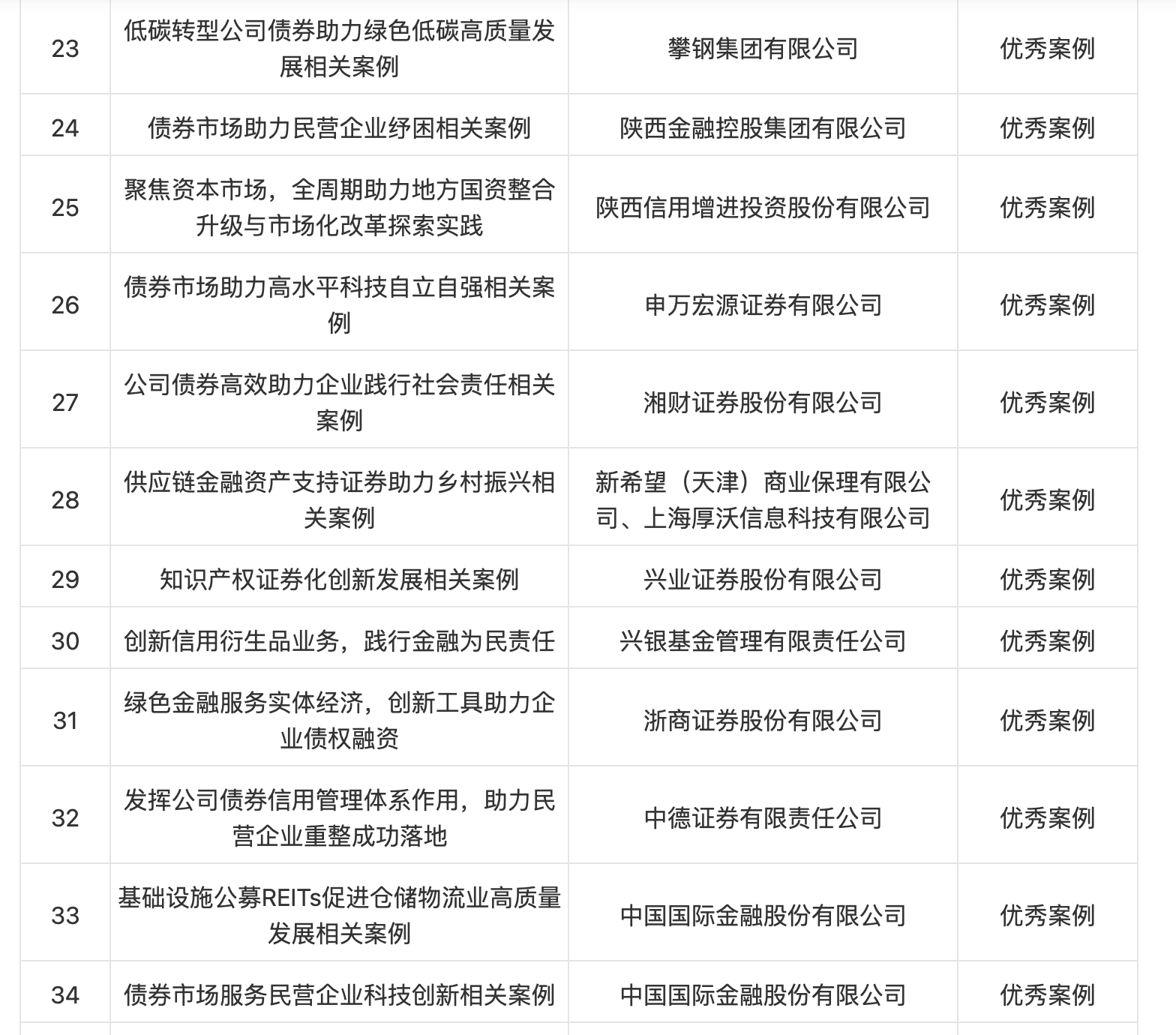 此次征集共收到債券發(fā)行人、證券公司、基金公司、商業(yè)銀行等單位申報的181個案例,包括債券市場服務(wù)實(shí)體經(jīng)濟(jì)、科技創(chuàng)新、綠色發(fā)展、鄉(xiāng)村振興、債券產(chǎn)品創(chuàng)新發(fā)展、債券風(fēng)險處置等方面。