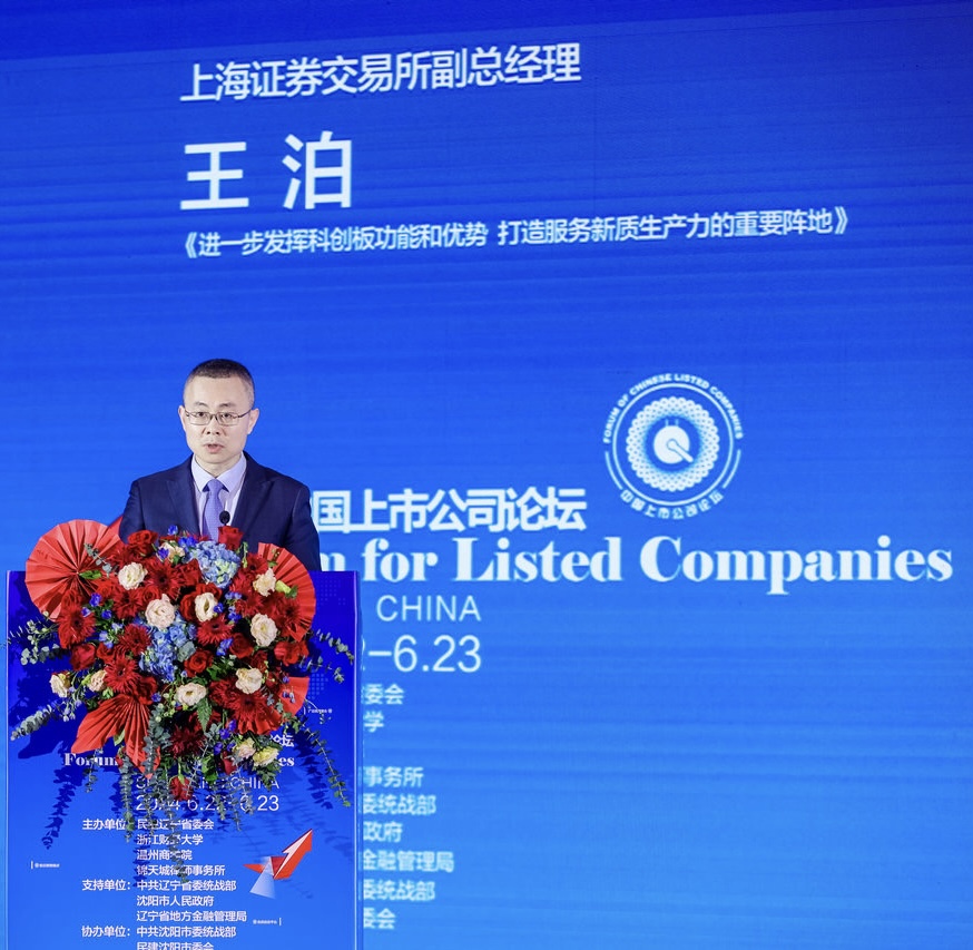 (上交所副總經(jīng)理王泊在“2024中國上市公司論壇”上進行主旨演講 主辦方供圖)