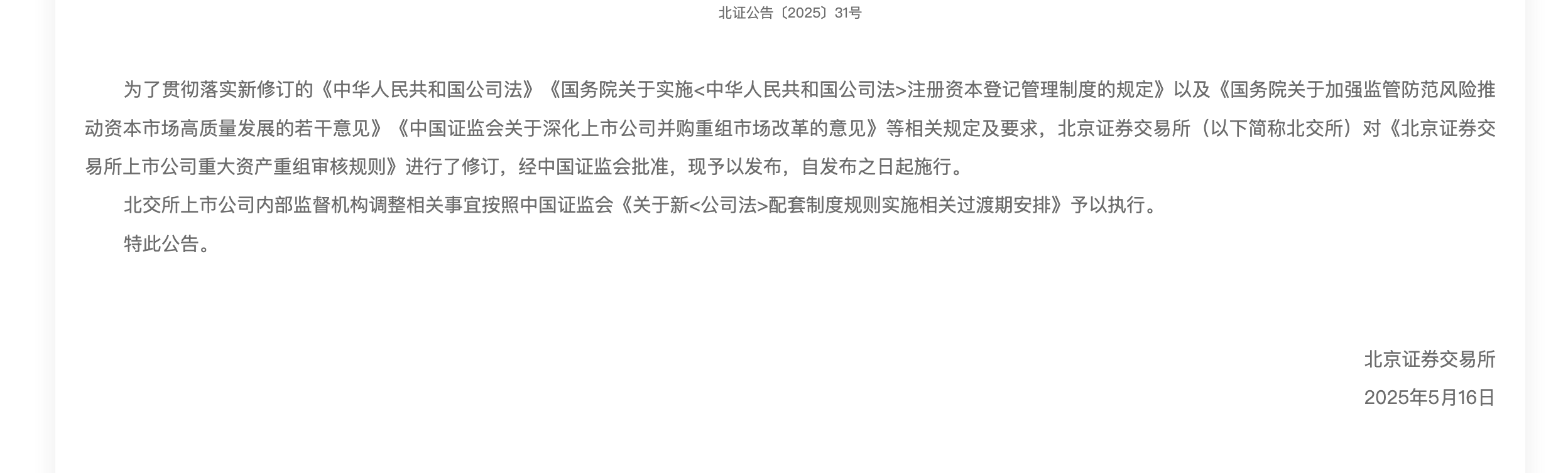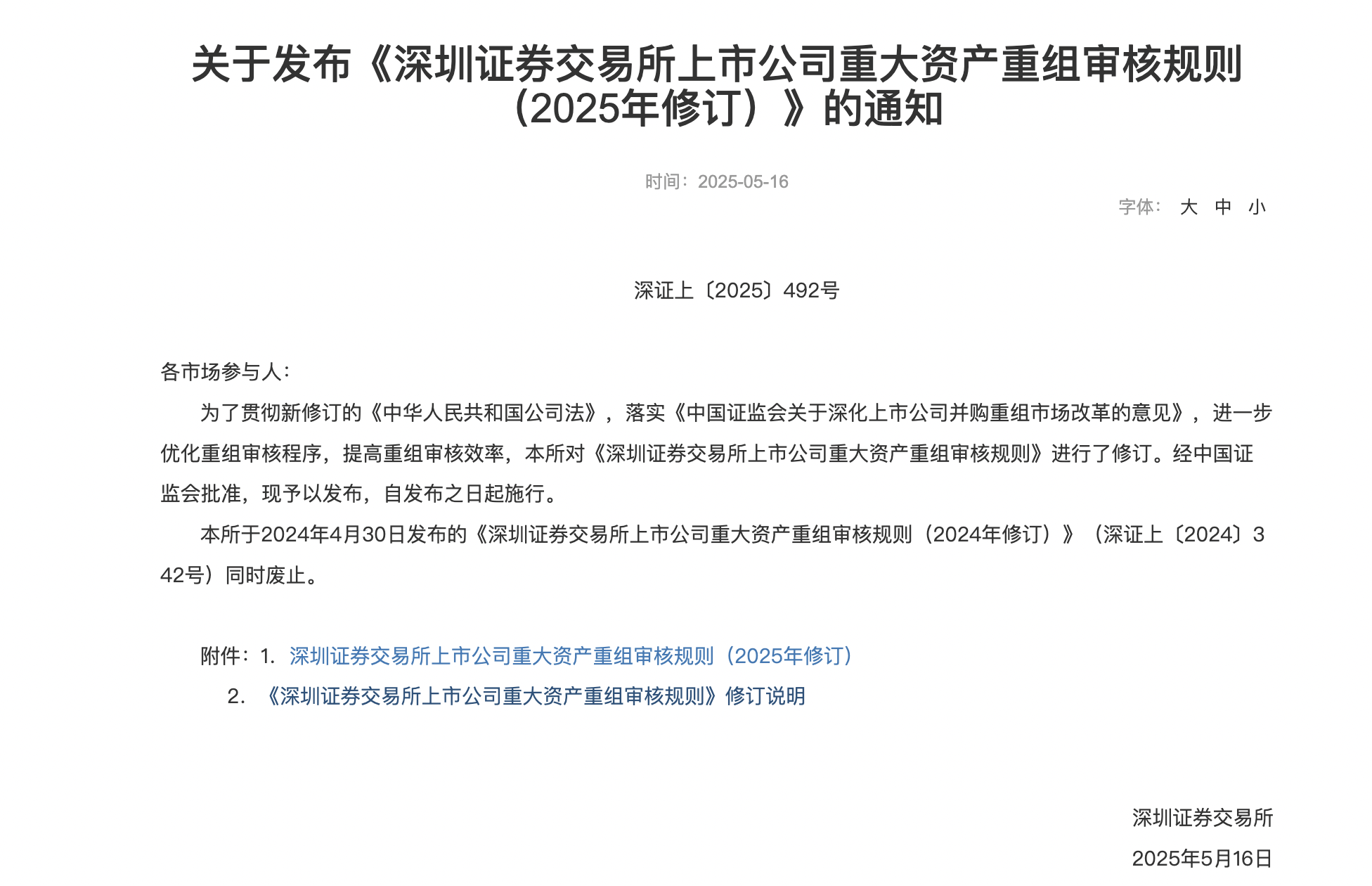 5月16日,中國證監(jiān)會修改《上市公司重大資產(chǎn)重組管理辦法》(以下簡稱《重組辦法》)。同日,滬深北交易所發(fā)布了新修訂的《上海證券交易所上市公司重大資產(chǎn)重組審核規(guī)則》《深圳證券交易所上市公司重大資產(chǎn)重組審核規(guī)則》《北京證券交易所上市公司重大資產(chǎn)重組審核規(guī)則》(以下簡稱《重組審核規(guī)則》)和配套業(yè)務(wù)指南。