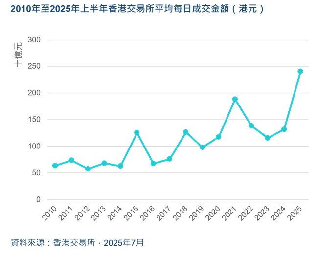 香港交易所:2025年上半年香港市場(chǎng)平均每日成交金額為2402億港元