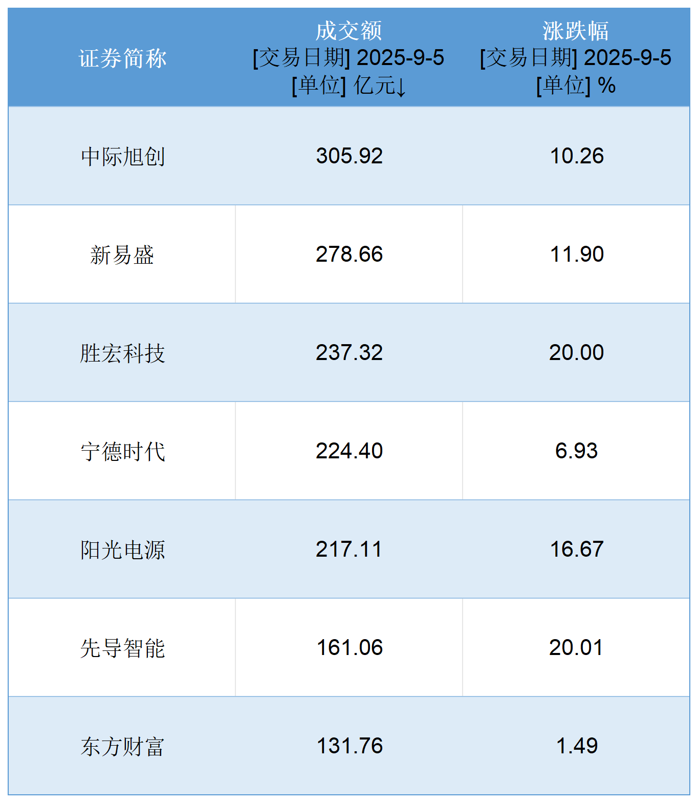圖:創(chuàng)業(yè)板中今日成交額居前的個股