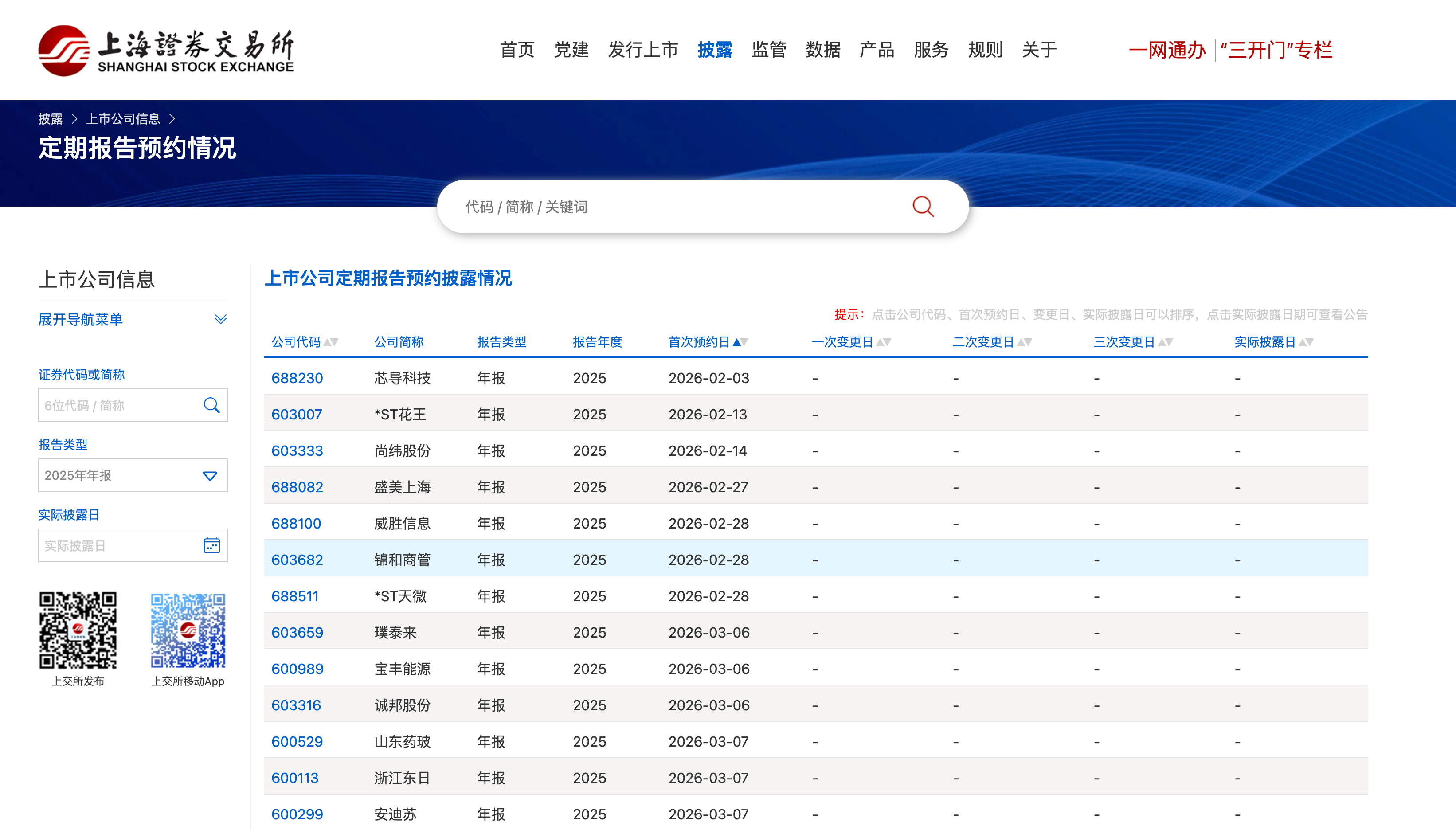 本報訊 (記者毛藝融)12月25日,滬市公司2025年年報預(yù)約披露時間表出爐。其中,科創(chuàng)板公司上海芯導(dǎo)電子科技股份有限公司拔得頭籌,將于2026年2月3日披露年報。