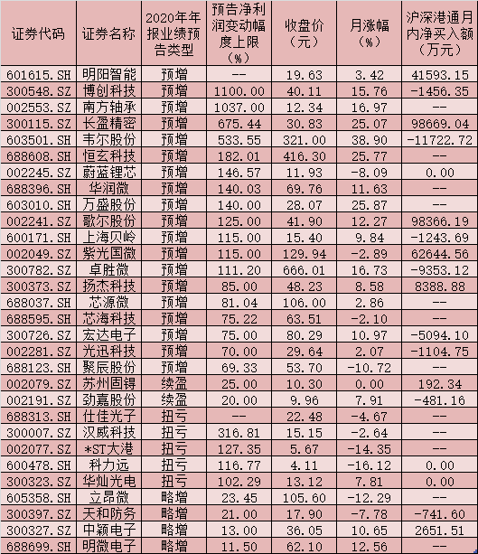 表:2020年年報(bào)業(yè)績預(yù)喜的芯片概念股