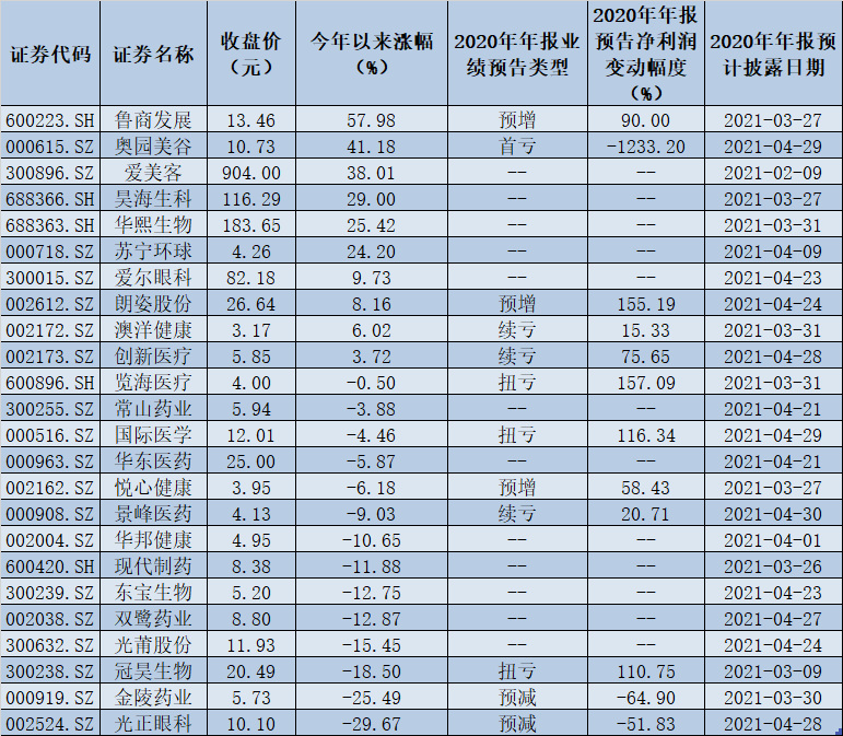 表:同花順醫(yī)美概念股今年以來市場表現(xiàn)一覽