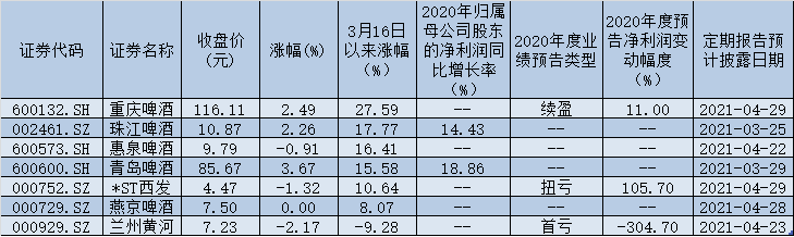 表:啤酒股市場表現(xiàn)一覽
