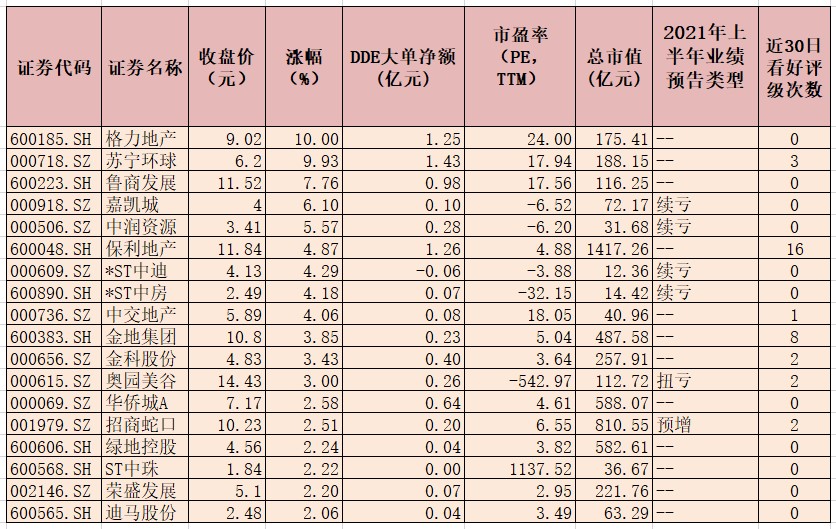 表:8月16日房地產(chǎn)行業(yè)漲幅超2%個(gè)股一覽