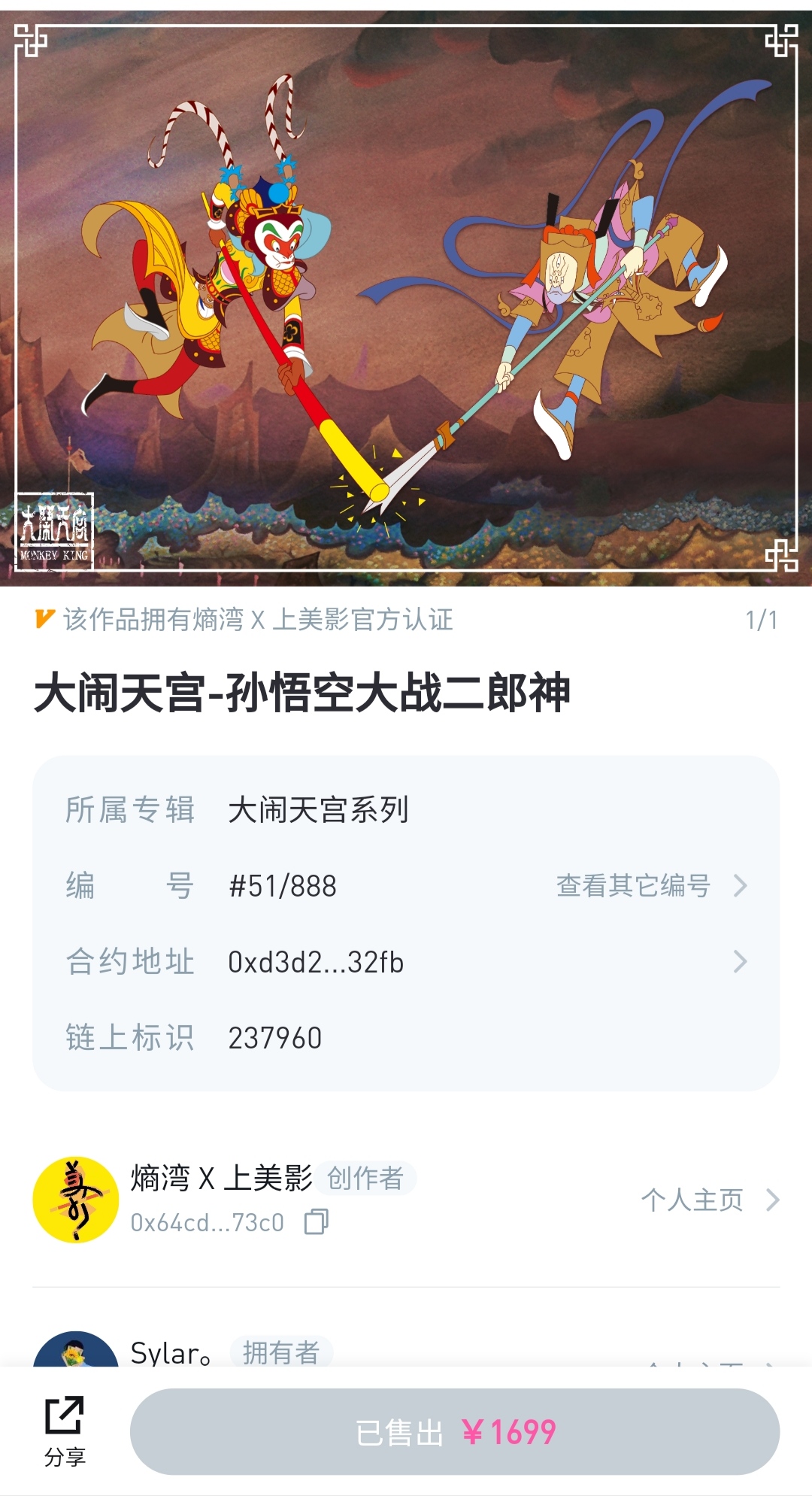 售價(jià)39元、限量2萬(wàn)份、NFT作品……這吸引了大量的收藏愛(ài)好者,也不乏像余軍這樣的投機(jī)者。沒(méi)搶到手,余軍到現(xiàn)在仍耿耿于懷:“這IP絕對(duì)是現(xiàn)在大廠發(fā)售的NFT作品中的天花板了,題材值錢(qián),并且是3D展示。二級(jí)市場(chǎng)至少四位數(shù)起,編號(hào)好的五位數(shù)都正常。”