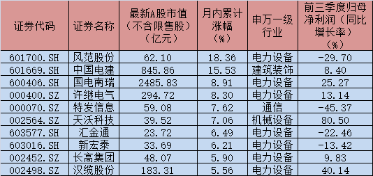 圖為:部分特高壓個(gè)股月內(nèi)市場(chǎng)表現(xiàn)制表:徐一鳴