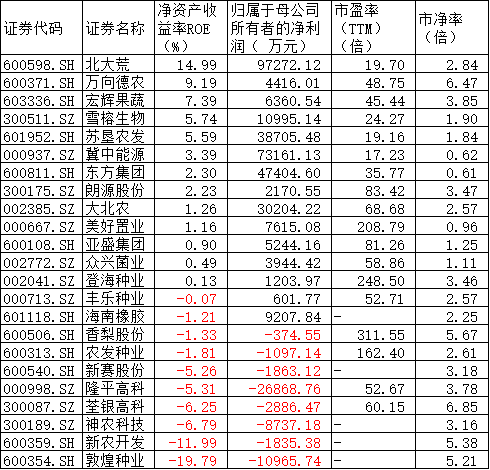 從業(yè)績的角度來看,農(nóng)業(yè)種植板塊則表現(xiàn)一般,23家上市公司中只有15家公司去年前三季度盈利,凈資產(chǎn)收益率在5%以上的僅有北大荒(14.99%)、萬向德農(nóng)(9.19%)、宏輝果蔬(7.39%)、雪榕生物(5.74%)、蘇墾農(nóng)發(fā)(5.59%)等5家公司。2019年年報業(yè)績預(yù)告方面則只有眾興菌業(yè)一家公司業(yè)績預(yù)減,其他公司均未披露業(yè)績預(yù)告。