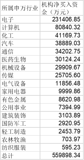 從行業(yè)屬性來(lái)看,上周機(jī)構(gòu)專用席位凈買入的74只個(gè)股中,流入電子與計(jì)算機(jī)行業(yè)的資金最高,分別達(dá)到23.14億元和8.08億元,合計(jì)31.22億元,占機(jī)構(gòu)買入總額的29.98%,即有近三成機(jī)構(gòu)專用席位凈買入資金流入電子與計(jì)算機(jī)行業(yè)。