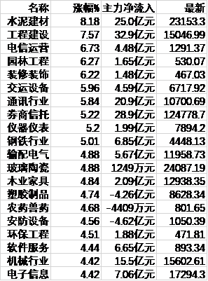 盤面顯示,61類行業(yè)板塊全線上漲,水泥建材(8.18%)、工程建設(shè)(7.57%)、電信運(yùn)營(yíng)(6.73%)等板塊居前3位。個(gè)股方面,呈現(xiàn)普漲格局,有3647只個(gè)股上漲,占當(dāng)日交易個(gè)股的96.43%,剔除首日上市新股N建業(yè)后,有多達(dá)200只非ST類個(gè)股封漲停板報(bào)收。