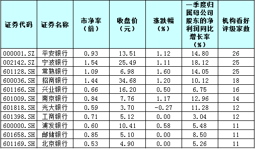 表:機(jī)構(gòu)看好評(píng)級(jí)居前的銀行股一覽