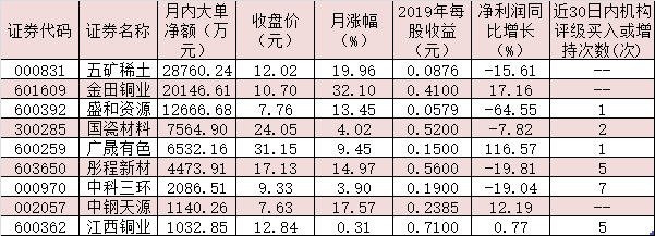 表:5月份以來(lái)累計(jì)大單資金凈流入超過(guò)1000萬(wàn)元的稀土永磁概念股