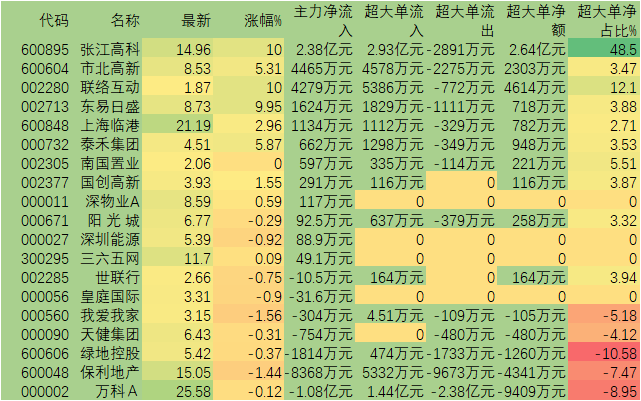 從資金流向來看,租售同權(quán)板塊整體大單資金凈流入1.52億元,其中,張江高科(2.38億元)、市北高新(4465萬元)、聯(lián)絡(luò)互動(4279萬元)、東易日盛(1624萬元)、上海臨港(1134萬元)等5只個股大單資金凈流入均超1000萬元,合計凈流入3.53億元。