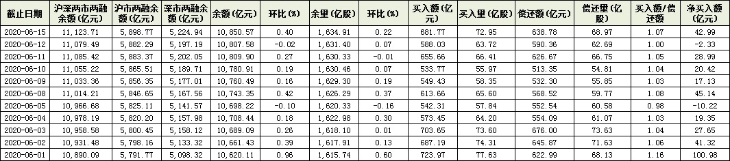 與此同時(shí),近日兩融資金也呈現(xiàn)出穩(wěn)步增加態(tài)勢(shì)。統(tǒng)計(jì)發(fā)現(xiàn),截至6月15日,兩融余額達(dá)11123.71億元,較5月底增加343.19億元。其中,融資余額為10850.57億元,較5月底增加331.44億元。