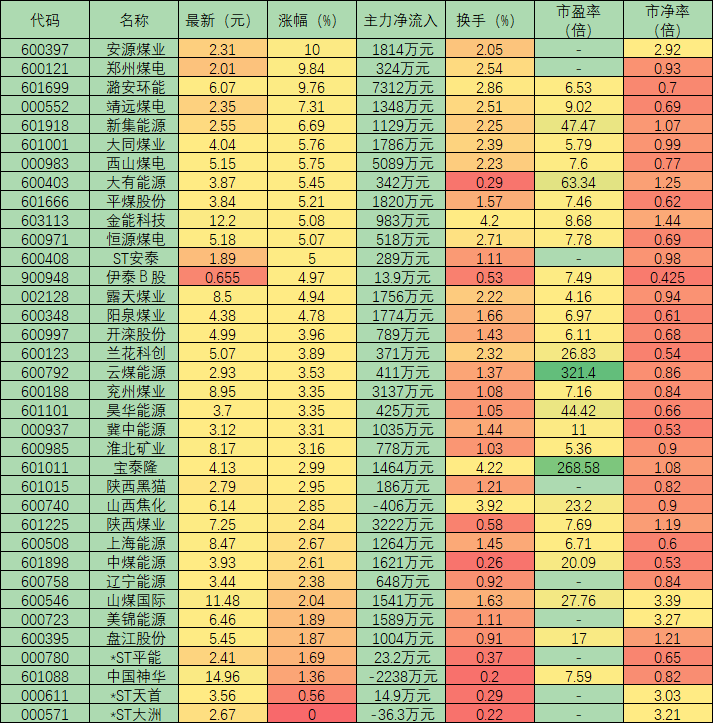 表:周四煤炭采選股市場表現(xiàn)一覽