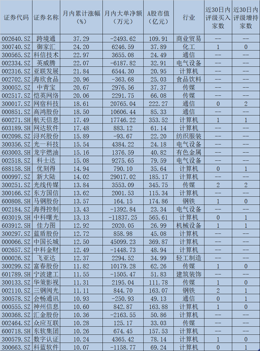 表:部分?jǐn)?shù)字經(jīng)濟(jì)概念股月內(nèi)市場(chǎng)表現(xiàn)