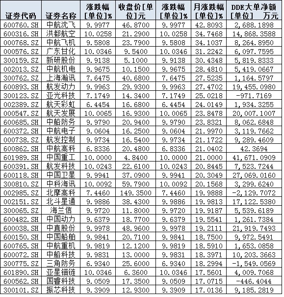 然而,今年下半年軍工股已然隨著大盤的飆升而悄然崛起。統(tǒng)計(jì)顯示,7月以來,有48只軍工股跑贏同期上證指數(shù)(月內(nèi)累計(jì)漲幅14.03%),占行業(yè)成份股比的近七成。其中,中航沈飛、洪都航空、中航飛機(jī)、廣東甘化、新研股份等個(gè)股月內(nèi)累計(jì)漲幅均超30%,分別為42.8%、34.7%、34.1%、31.2%和30.4%,表現(xiàn)搶眼。