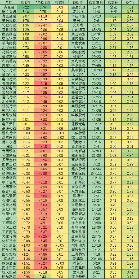 表:周一各行業(yè)市場(chǎng)表現(xiàn)一覽