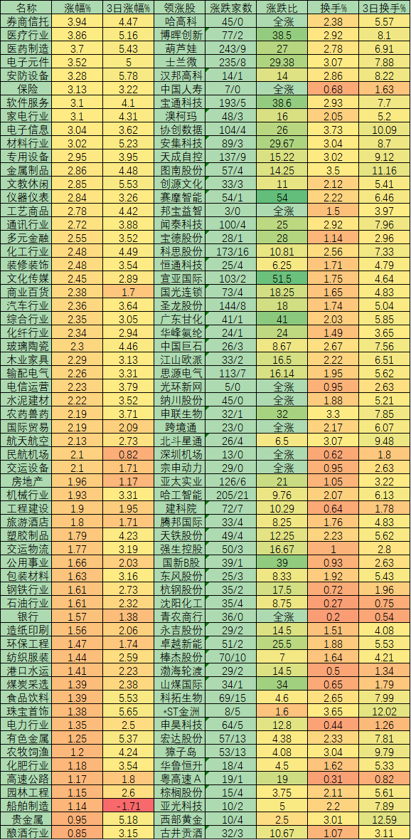 表:周三各行業(yè)市場(chǎng)表現(xiàn)一覽