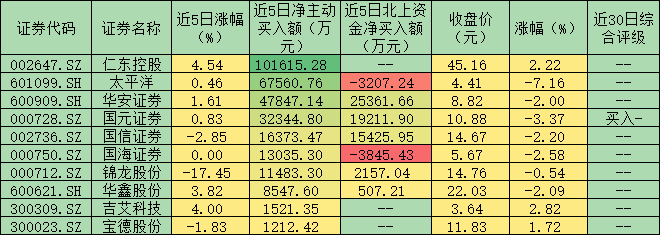 從資金流向來看,非銀金融板塊近5個(gè)交易日資金整體呈凈流出態(tài)勢,整體大單資金凈流出197.02億元,不過,仍有10只個(gè)股呈資金凈流入,其中,有包括仁東控股(101615.28萬元)、太平洋(67560.76萬元)、華安證券(47847.14萬元)等在內(nèi)的7只個(gè)股資金凈流入額超1億元。