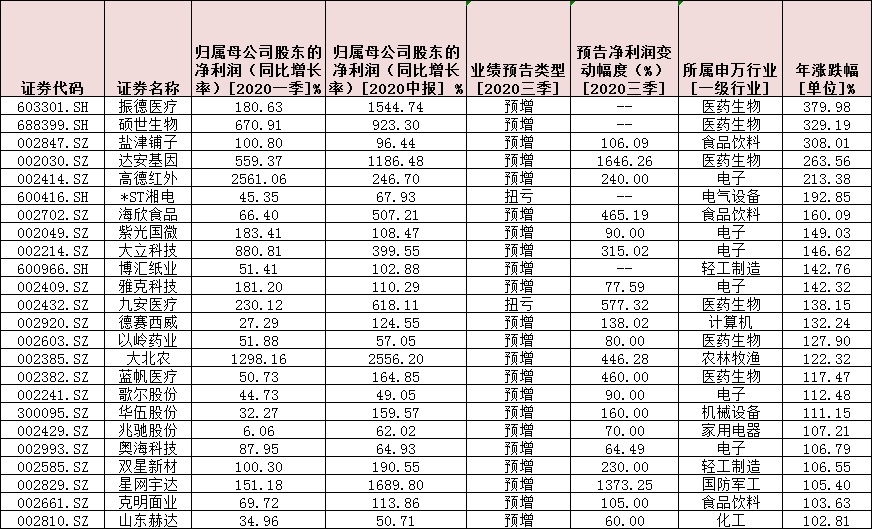統(tǒng)計(jì)發(fā)現(xiàn),在上述110只三連增的個(gè)股中,今年以來,有78只個(gè)股跑贏同期上證指數(shù)(年內(nèi)累計(jì)漲幅11.6%),占比達(dá)70.9%。其中,振德醫(yī)療、碩世生物、鹽津鋪?zhàn)?、達(dá)安基因、高德紅外等個(gè)股股價(jià)年內(nèi)累計(jì)漲幅均超200%。另外,包括海欣食品、紫光國微、大立科技、博匯紙業(yè)、雅克科技、九安醫(yī)療等在內(nèi)的19只個(gè)股年內(nèi)累計(jì)漲幅均超100%,盡顯強(qiáng)勢。
