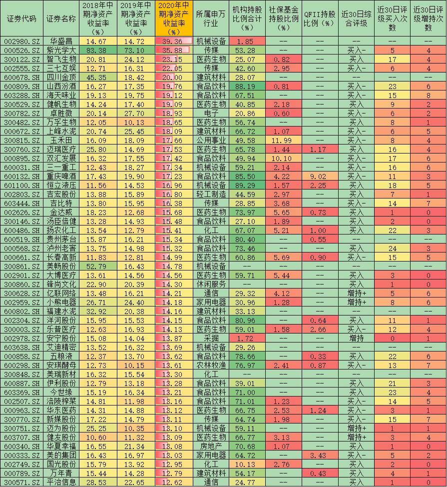 今年,在新冠肺炎疫情的影響下,A股半年報凈資產(chǎn)收益率TOP50公司數(shù)據(jù)仍表現(xiàn)不凡,這為各路資金配置A股帶來了堅定信心。