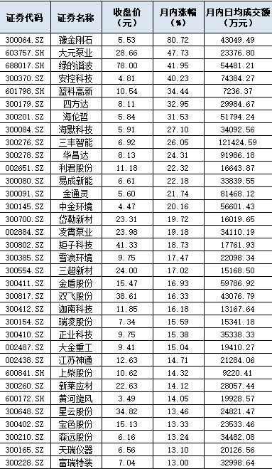 表:月內(nèi)漲幅居前的機械設備股一覽
