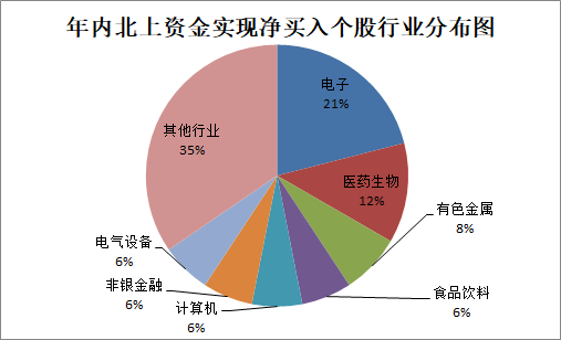 行業(yè)特征方面,上述81只年內(nèi)北上資金青睞個(gè)股主要扎堆在電子、醫(yī)藥生物、有色金屬等三大行業(yè),涉及個(gè)股數(shù)量分別為17只、10只、6只。另外,食品飲料、計(jì)算機(jī)、非銀金融、電氣設(shè)備等行業(yè)也均有5只個(gè)股入圍??梢钥吹?,以醫(yī)藥生物、食品飲料等為代表的大消費(fèi)類(lèi)龍頭白馬股和科技類(lèi)龍頭股成為年內(nèi)北上資金重點(diǎn)布局的領(lǐng)域。
