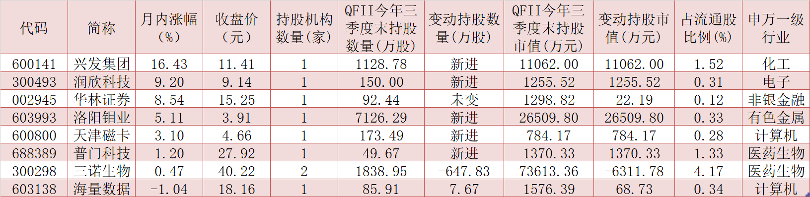 表:今年三季度獲QFII持倉(cāng)的個(gè)股一覽(截至10月19日)