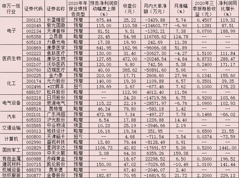 統(tǒng)計發(fā)現(xiàn),在上述29只預喜股中,截至目前,有18家公司已披露2020年三季報業(yè)績,有16家公司有望實現(xiàn)三季報、年報凈利潤同比雙增長,占比近九成,彰顯業(yè)績增長的穩(wěn)定性。