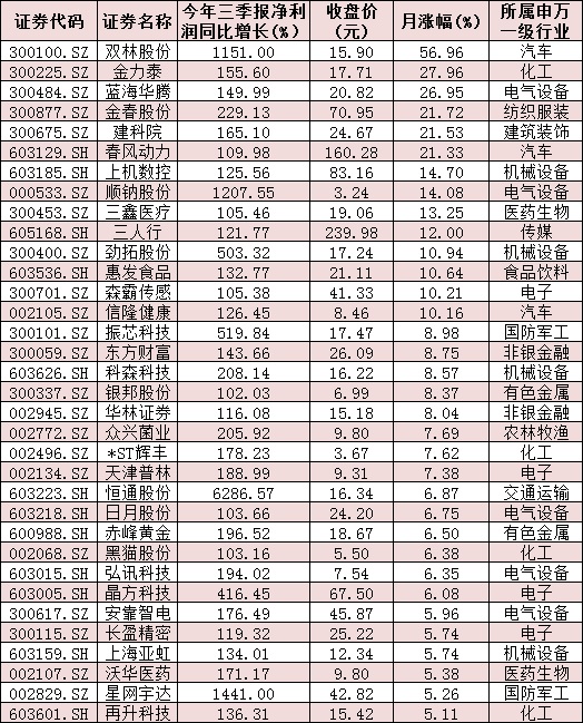 表:10月以來漲幅超5%的業(yè)績翻番股情況