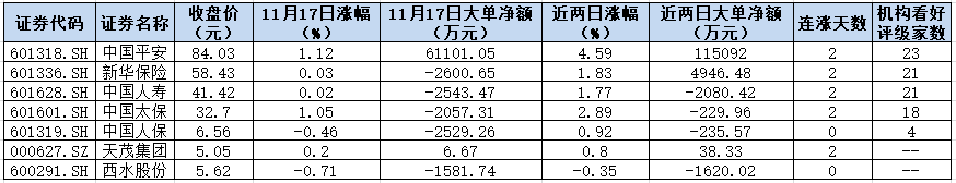 這一觀點也得到了資金的認可?!蹲C券日報》記者根據(jù)同花順數(shù)據(jù)統(tǒng)計發(fā)現(xiàn),近兩個交易日,保險板塊呈現(xiàn)大單資金凈流入態(tài)勢,合計凈流入11.59億元。具體來看,中國平安期間大單資金凈流入居首,達到115092萬元,新華保險緊隨其后,大單資金凈流入4946.48萬元,這兩只個股合計吸金超過12億元。