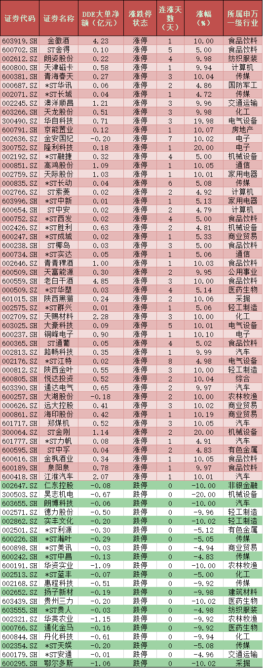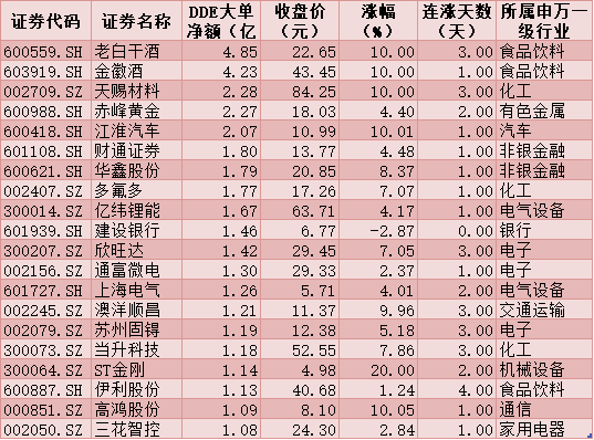 一、周二(12月8日)DDE大單資金凈買入TOP20