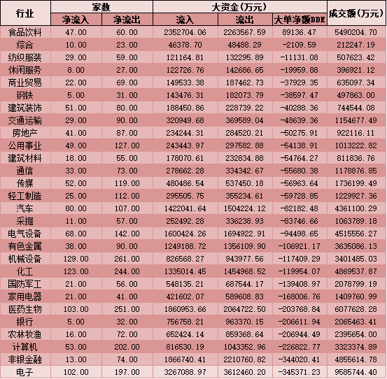 二、周二(12月8日)申萬一級行業(yè)大單資金流向