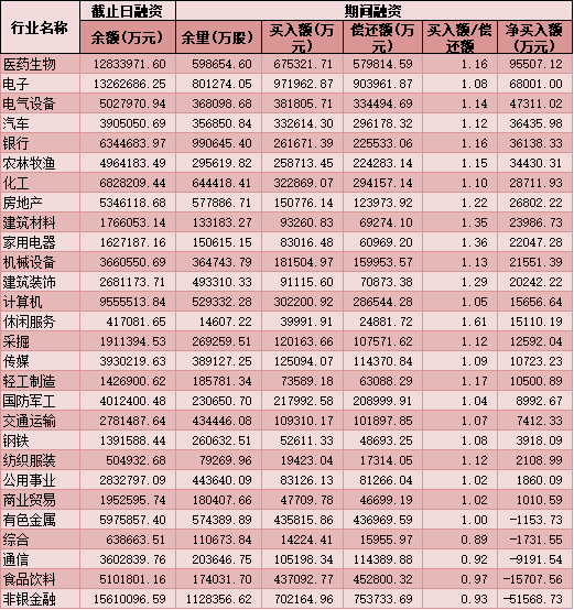 六、截至12月7日申萬一級行業(yè)兩融交易情況