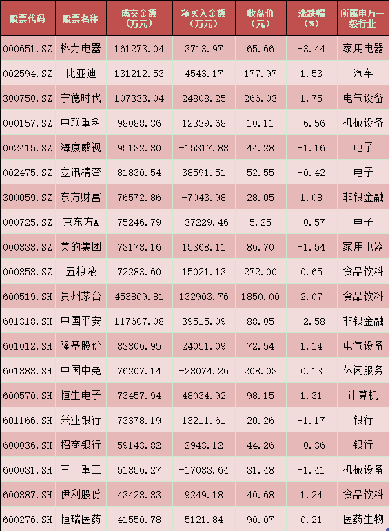 四、周二(12月8日)滬、深股通前十大成交活躍股交易情況