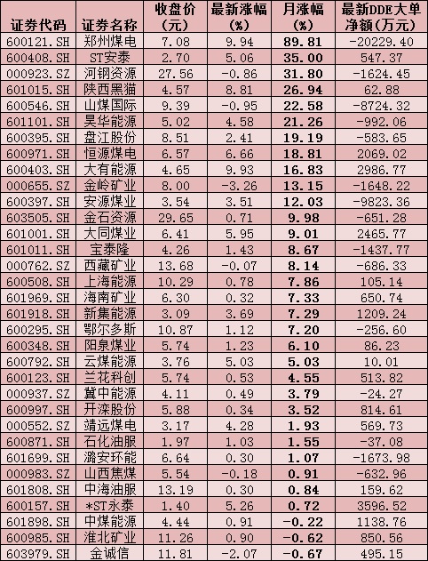 崛起!周四,在大盤震蕩回落中,采掘行業(yè)逆市上揚(yáng),截至收盤,行業(yè)指數(shù)漲幅達(dá)0.57%,位居漲幅榜前列。其中,鄭州煤電、大有能源等2只個(gè)股,均報(bào)收于漲停板,陜西黑貓、恒源煤電、大同煤業(yè)、*ST永泰、ST安泰、云煤能源等個(gè)股漲幅均超5%。
