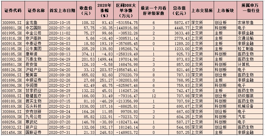 與此同時,記者通過梳理發(fā)現(xiàn),自首發(fā)上市以來,截至2020年12月31日,有178只個股呈現(xiàn)大單資金凈流入,期間大單資金凈流入超1億元的有115只,派能科技、愛美客、恒玄科技、萬泰生物、公牛集團、新產(chǎn)業(yè)、奇安信等7只個股期間均獲得超16億元大單資金凈流入。