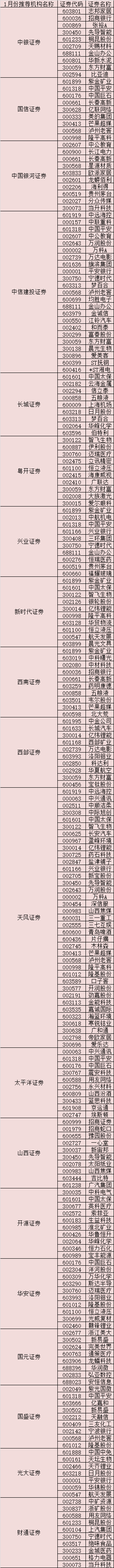 可以看到,部分機(jī)構(gòu)更是信心滿滿,一批1月份“金股”也隨之出爐?!蹲C券日?qǐng)?bào)》記者統(tǒng)計(jì)發(fā)現(xiàn),截至1月4日,包括中國(guó)銀河證券、中銀證券等在內(nèi)的19家券商公布了今年1月份的“金股”名單,涉及個(gè)股數(shù)量達(dá)162只。