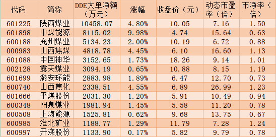 可以看到,隨著市場(chǎng)風(fēng)險(xiǎn)偏好逐步回升,具有低估值的煤炭板塊吸引了市場(chǎng)資金的目光?!蹲C券日?qǐng)?bào)》記者根據(jù)同花順數(shù)據(jù)統(tǒng)計(jì)發(fā)現(xiàn),1月7日,煤炭板塊呈現(xiàn)資金凈流入態(tài)勢(shì),合計(jì)吸金2.63億元。陜西煤業(yè)大單資金凈流入居首,達(dá)到10458.07萬(wàn)元,中煤能源緊隨其后,大單資金凈流入也達(dá)8115.02萬(wàn)元,兗州煤業(yè)、山西焦煤、中國(guó)神華、露天煤業(yè)大單資金凈流入也分別達(dá)到5134.23萬(wàn)元、4818.78萬(wàn)元、3152.65萬(wàn)元、3094.19萬(wàn)元,潞安環(huán)能、山西焦化、平煤股份、陽(yáng)泉煤業(yè)、上海能源、淮北礦業(yè)、開(kāi)灤股份等7只個(gè)股大單資金凈流入也均在1000萬(wàn)元以上,上述13只個(gè)股合計(jì)大單資金凈流入達(dá)4.79億元。