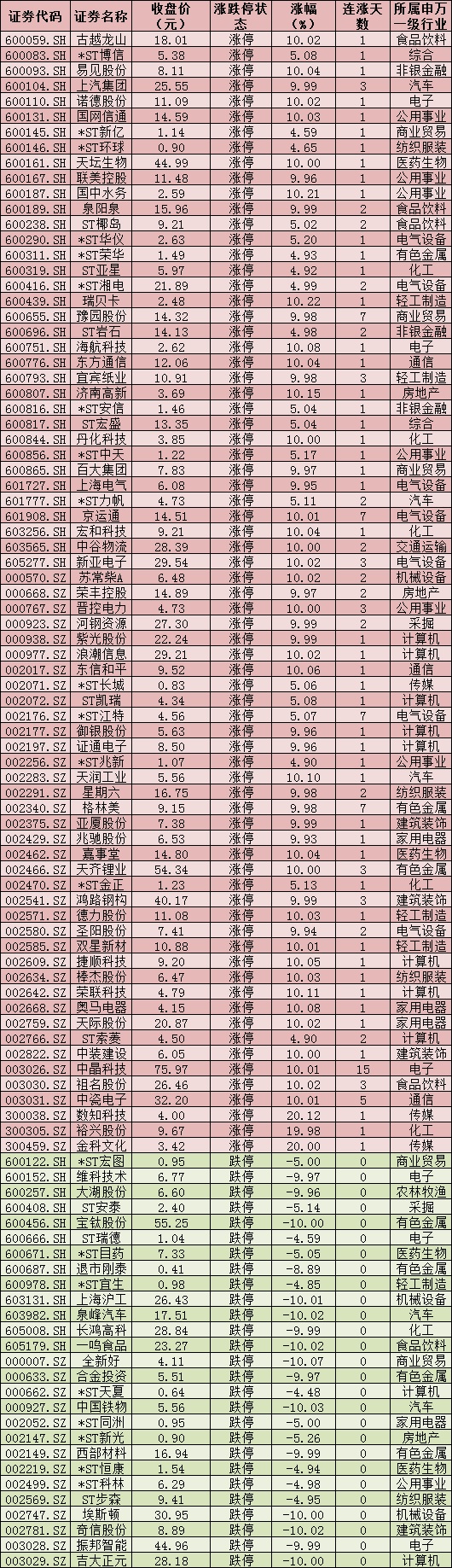 三、周五(1月8日)漲跌停股