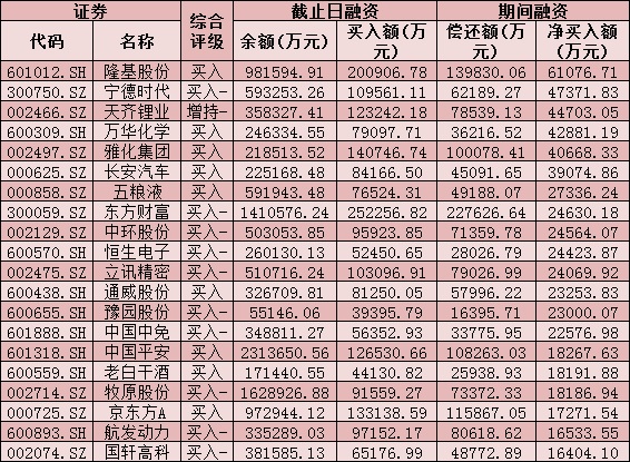 七、1月7日融資凈買入股TOP20