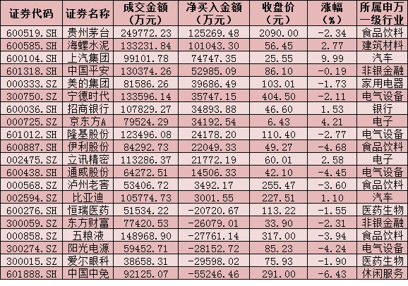 四、周五(1月8日)滬、深股通前十大成交活躍股交易情況