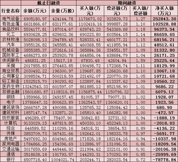 六、截至1月7日申萬級一級行業(yè)兩融交易情況