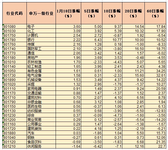 表:申萬(wàn)一級(jí)行業(yè)指數(shù)近期漲幅一覽