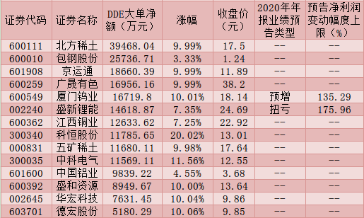 表:周四獲5000萬元以上大單資金搶籌的稀土永磁概念股