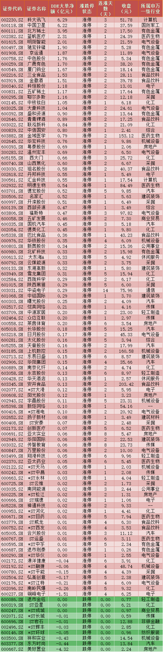 一、周四(1月21日)DDE大單資金凈買入TOP20